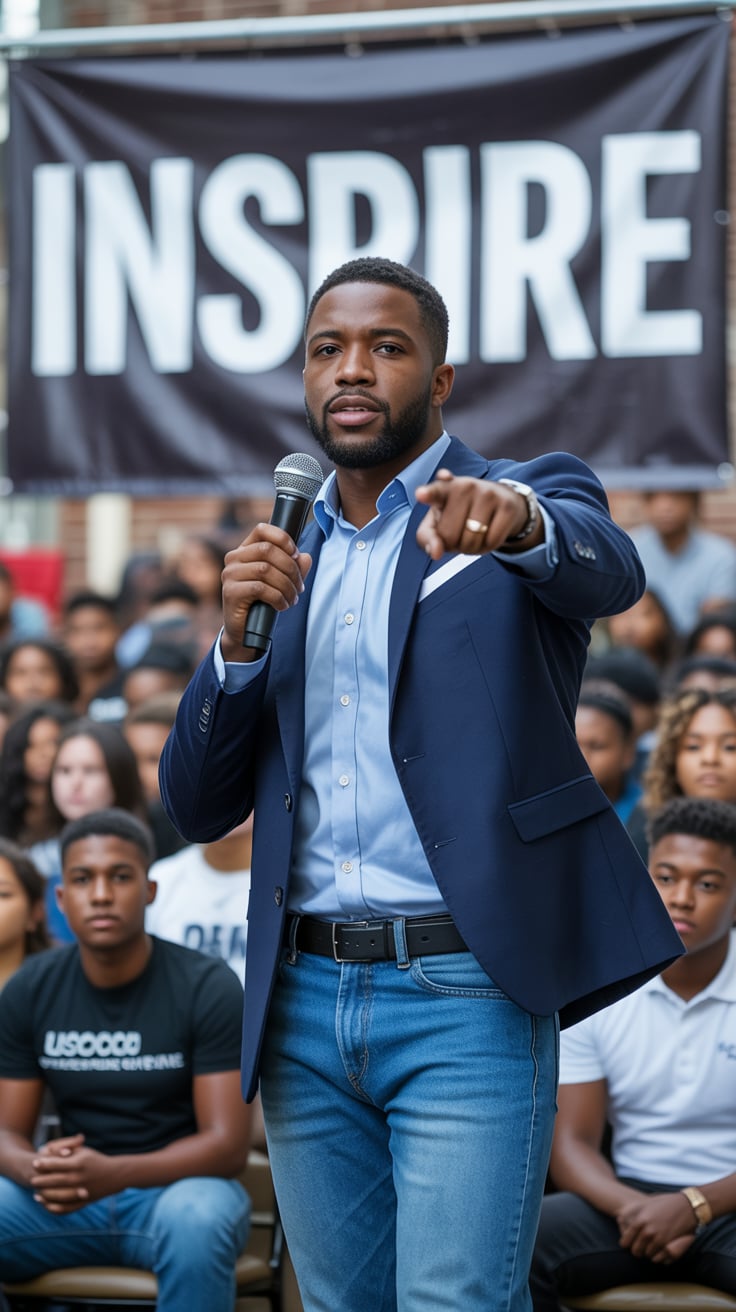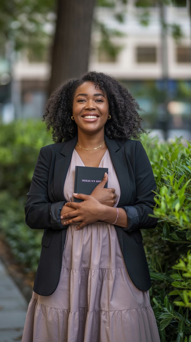 A professional outdoor portrait of a (skin color) (age range) (gender/subject) with a (body shape) i...