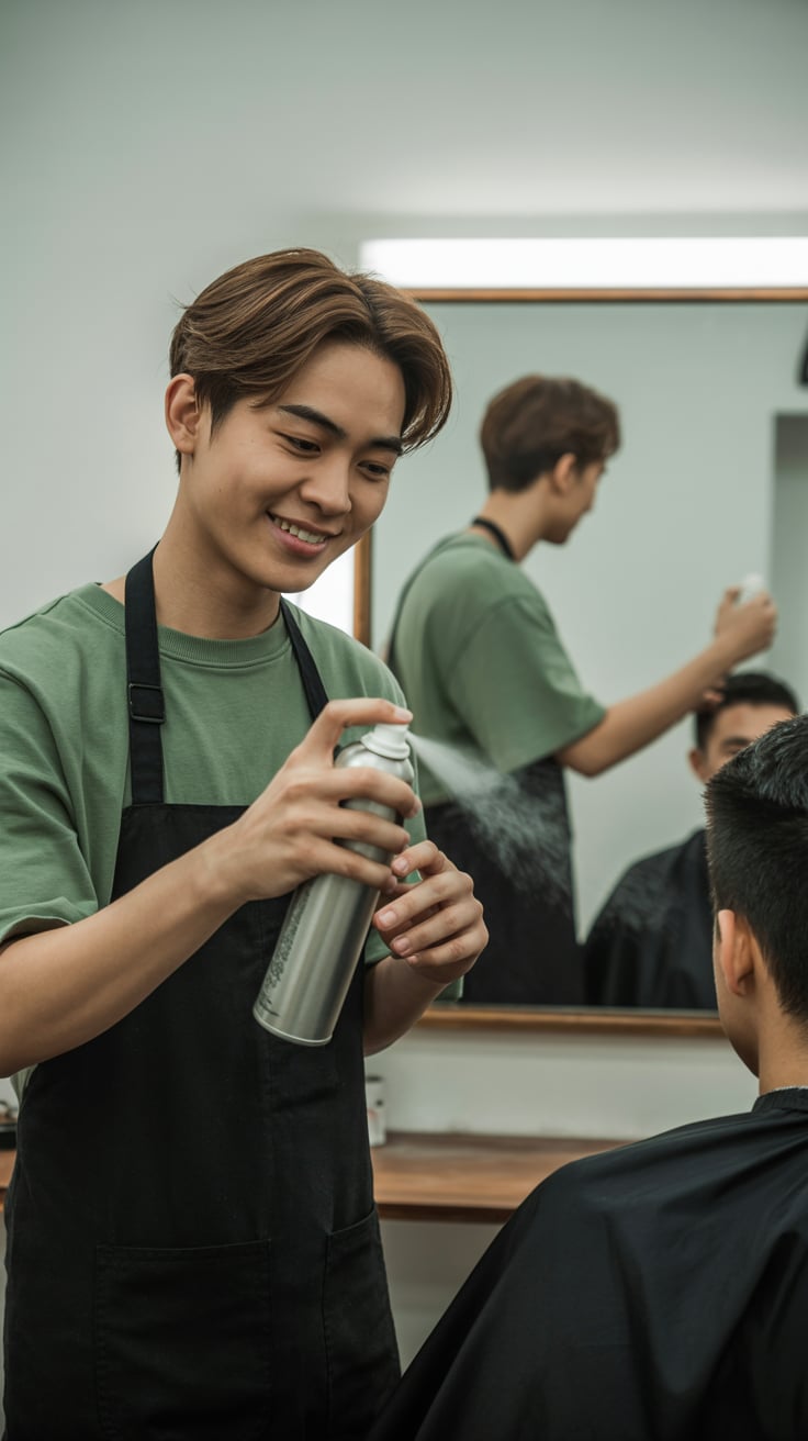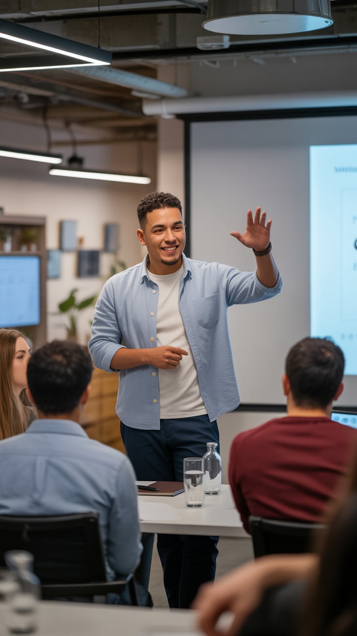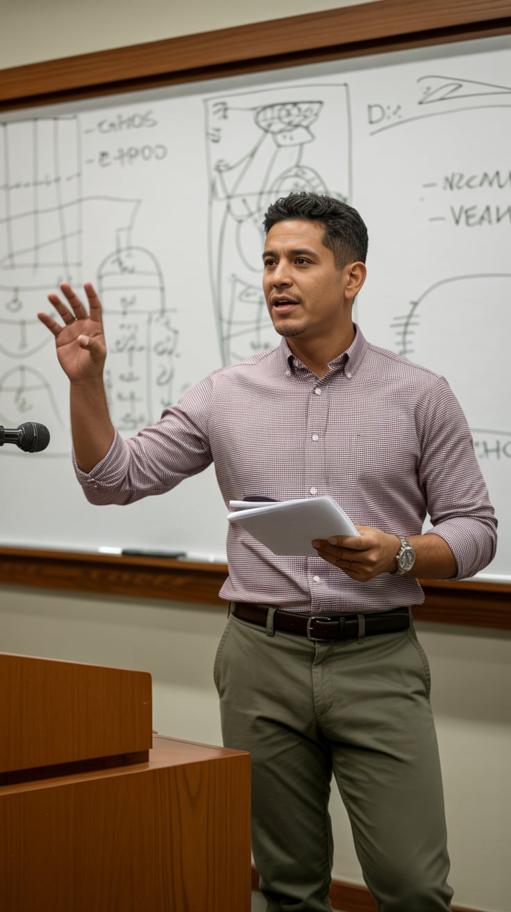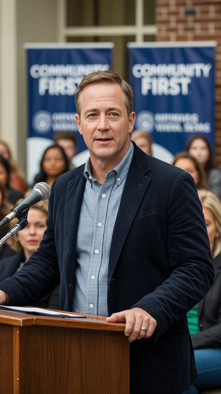 A professional headshot of a (skin tone) (man/person) with (short brown hair, modern fade). Eye colo...