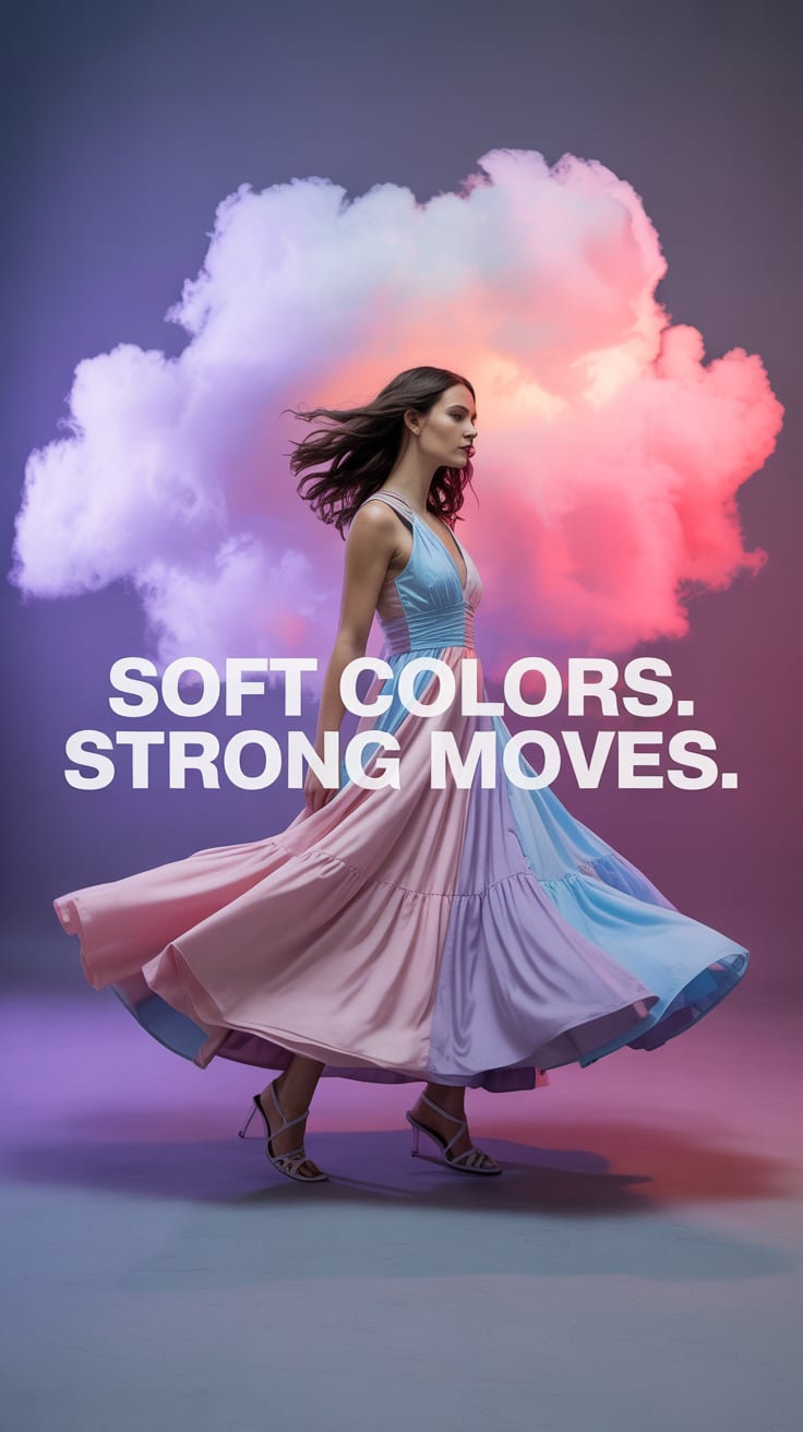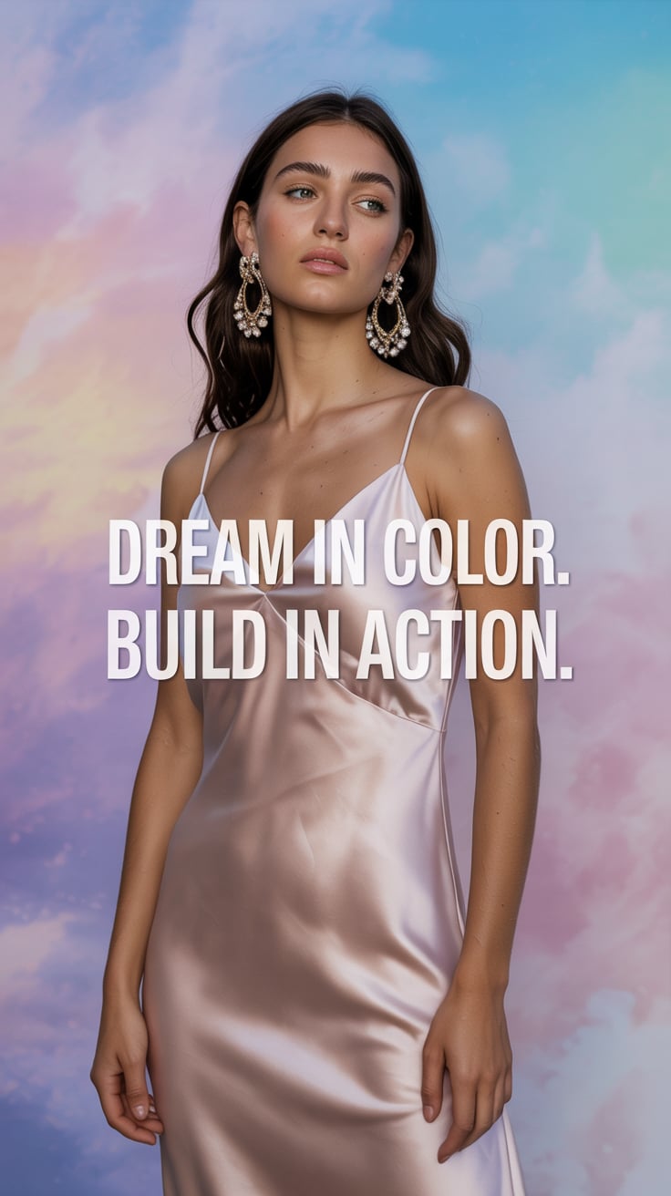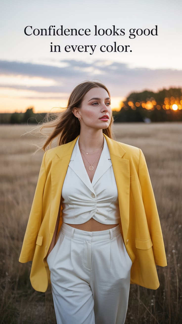 A professional fashion photography portrait against a plain (background color) backdrop. A (age rang...