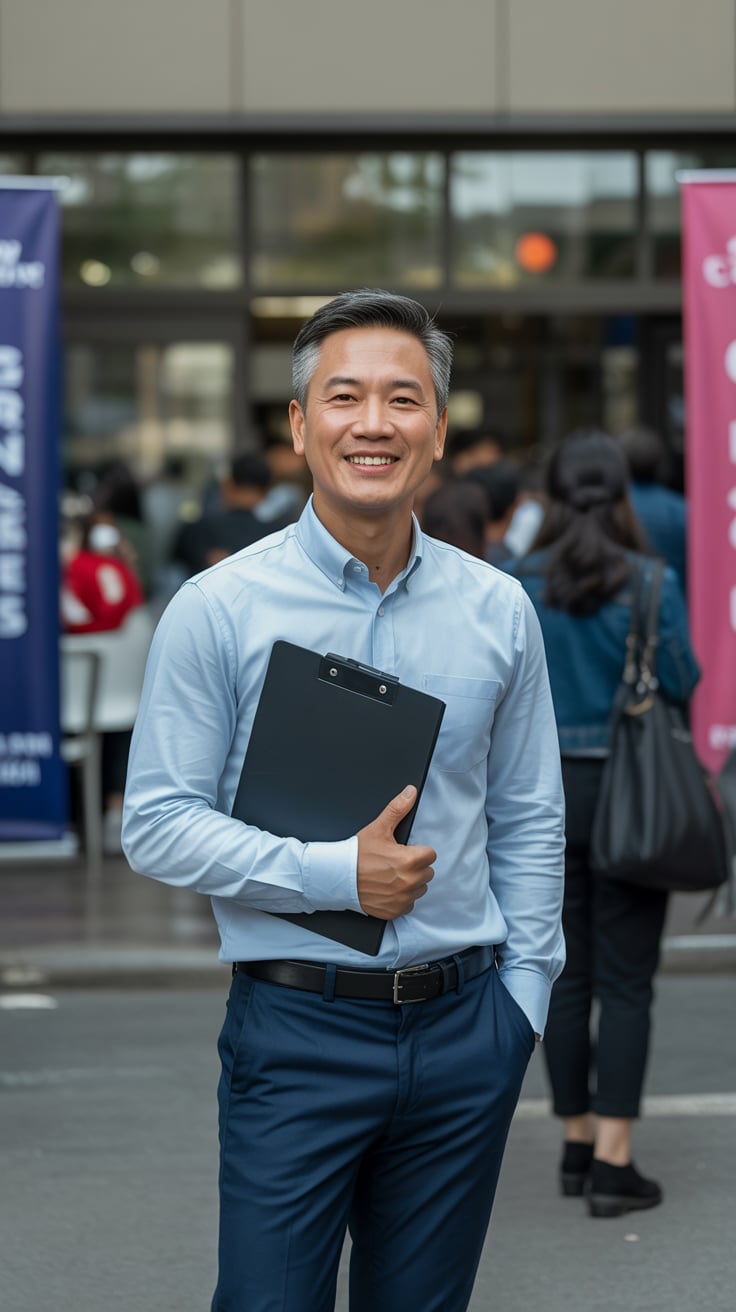 A professional portrait of a (age group: young adult / middle-aged / senior) (man/woman/person) with...