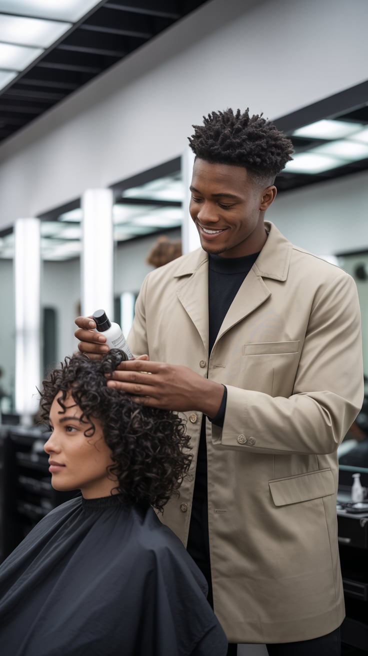 A professional portrait photograph of a (skin color) (age range) (gender/subject) with a (hair color...