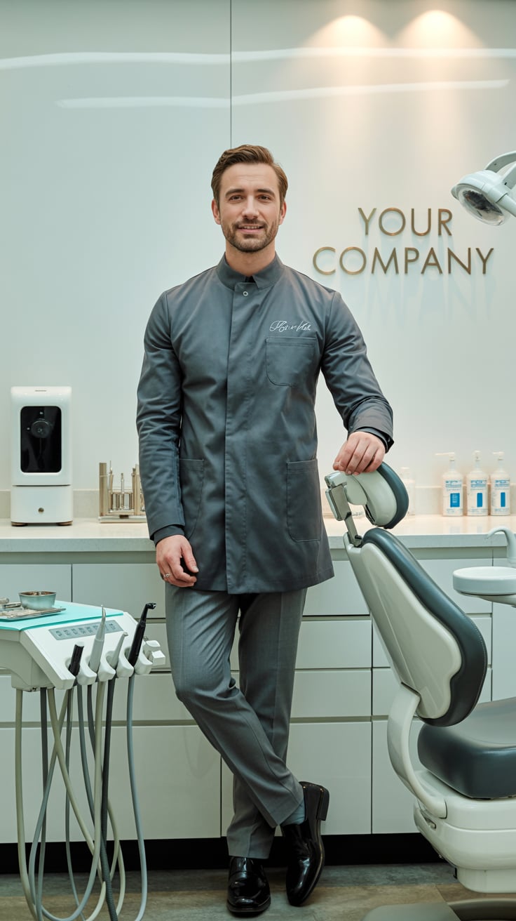 Professional business portrait in a modern industrial setting. A (gender/subject) wearing a crisp wh...